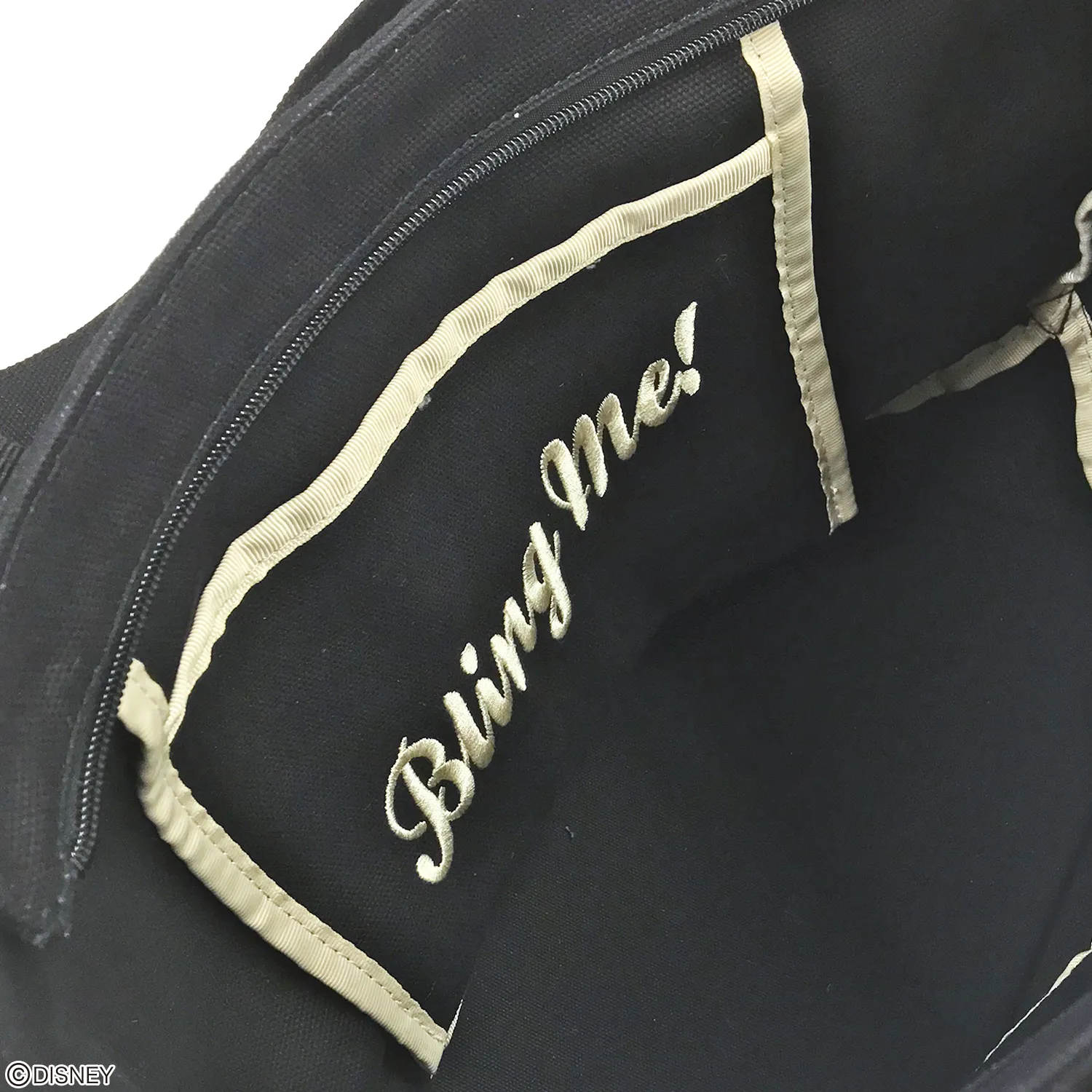 どちらのサイズも内側にはリボンのパイピングと刺繍を施しています。