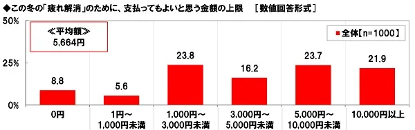 ◆ワーママがこの冬「疲れの解消」に払ってもいい金額 平均5,700円