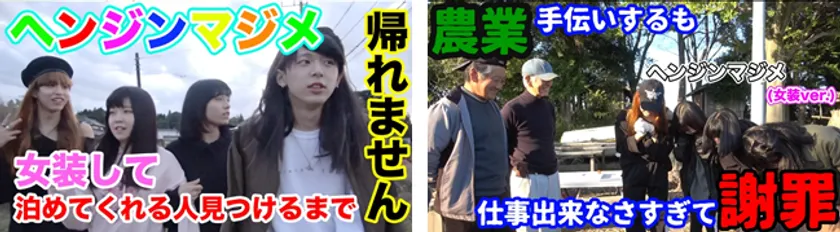 大阪出身の4人組YouTuber「ヘンジンマジメ」 茨城県の農村で宿泊先探しのはずが、女装姿で農作業体験!? いばキラTV新企画「茨城泊まってみた」