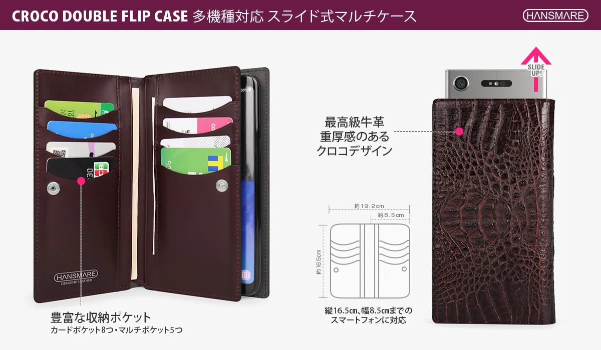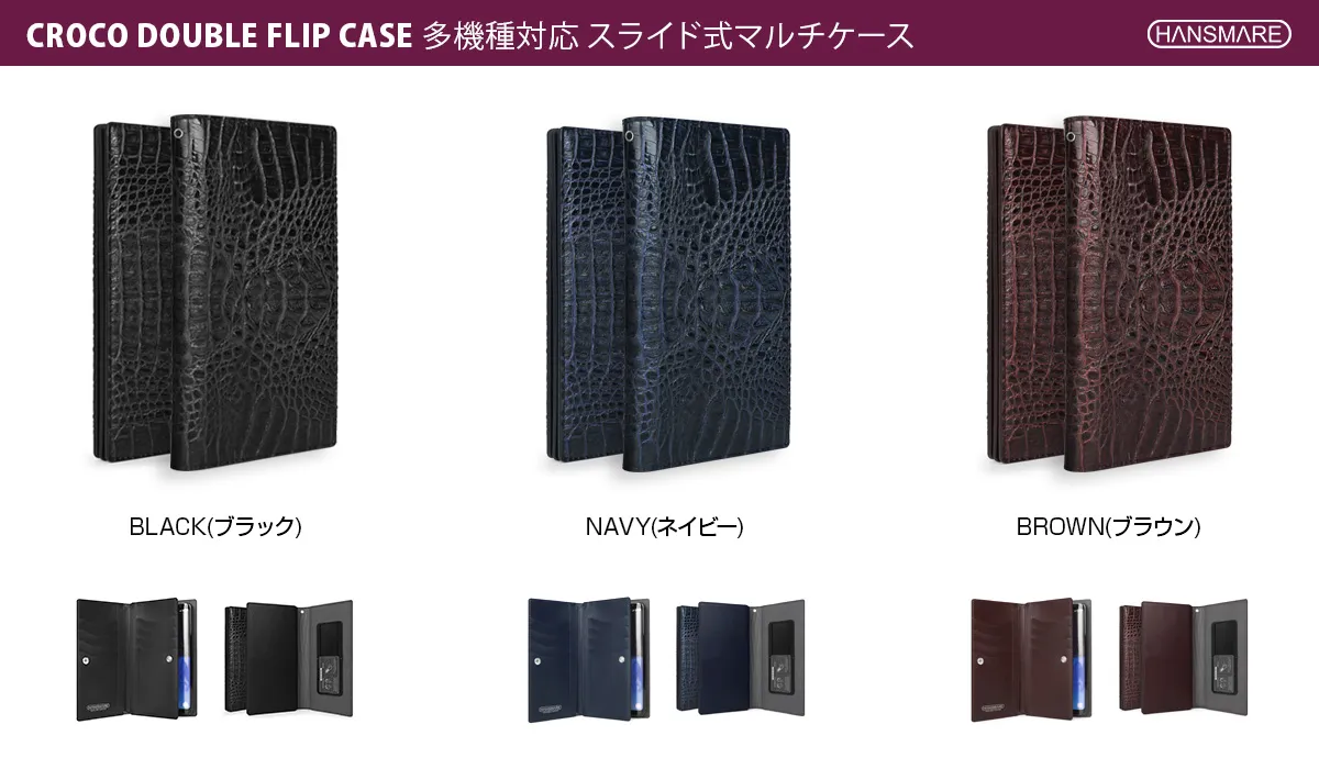 商品名 :多機種対応スライド式マルチケース CROCO DOUBLE FLIP CASE