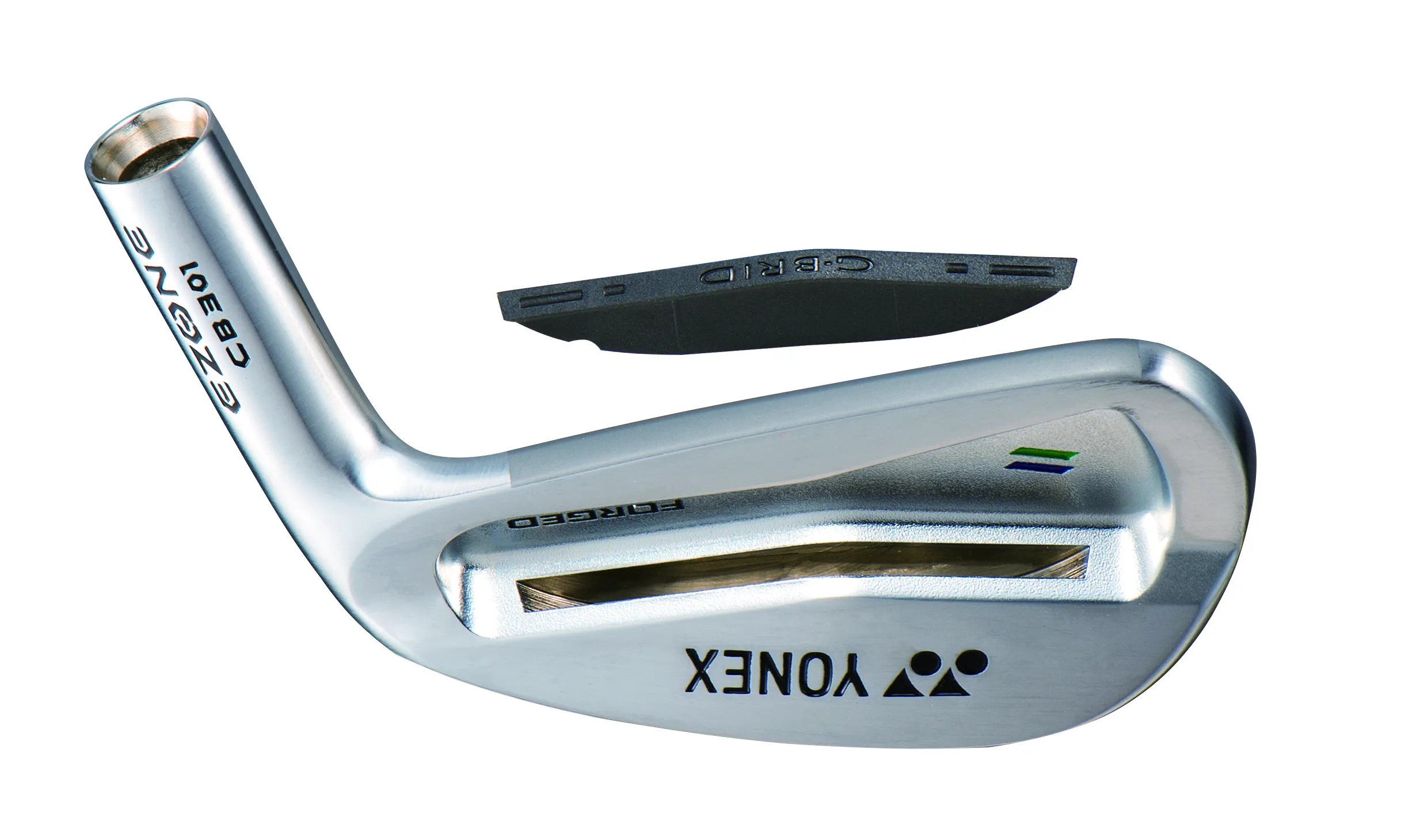 EZONE CB 301フォージドアイアンは、中上級者に向けてマッスルバックアイアンの操作性とキャビティアイアンの寛容性の両立を追求して開発したヨネックス国内自社工場製の本格的軟鉄鍛造アイアンです。最大の特徴は、フェース裏側に複合させたG-BRID(グラファイトハイブリッド)構造を採用したことです。スリット内部にグラファイト制振材を複合することで、振動を抑え打球感が向上するのに加え、深・低重心化が可能となり、見た目以上のやさしさを実現しました。さらに、本体の軟鉄素材を新製法の真空熱処理※を施したことで、一般的な軟鉄アイアンよりも硬度が約20%軟らかくなり、プロや上級者が好む打ち応えと高いコントロール性を実現しました。
