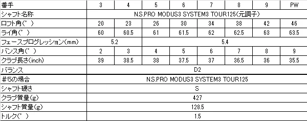 シャフト:N.S.PRO MODUS3 SYSTEM3 TOUR125