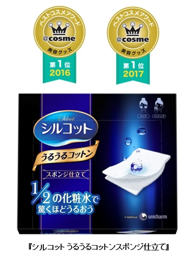 ユニ・チャーム株式会社(本社:東京都港区、社長:高原豪久)は、684,740件のクチコミから選ばれた@cosmeベストコスメアワード2017ベスト美容グッズにて、『シルコット うるうるコットンスポンジ仕立て』が2年連続で第1位を受賞したことをお知らせいたします。