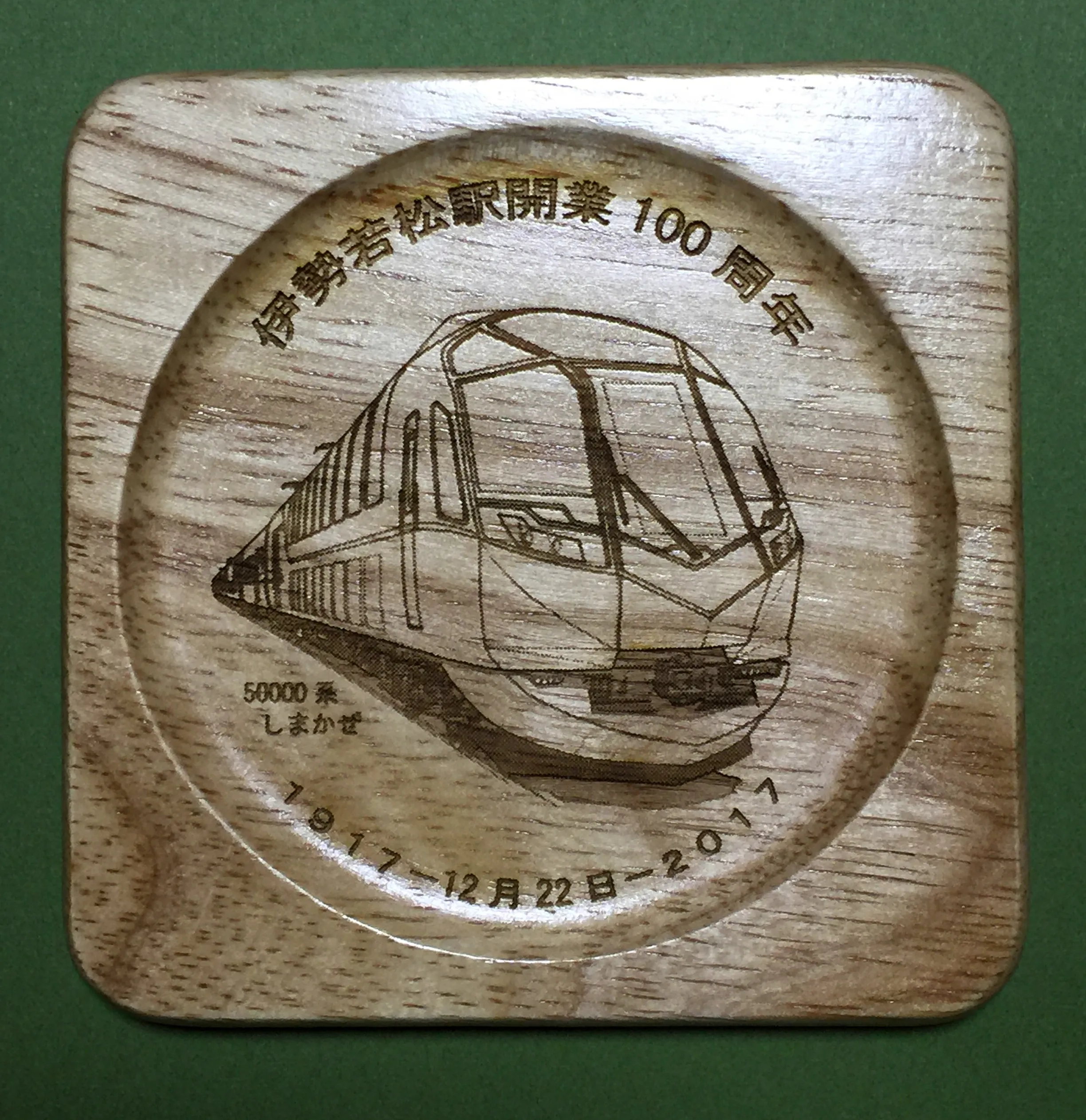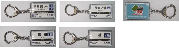 記念グッズは、木製コースター(900円)、駅名キーホルダー(600円)、字幕キーホルダー(600円)、マウスパッド(700円)の4種類で、木製コースターには観光特急「しまかぜ」など当社を代表する特急列車のイラストを、マウスパッドには現在の伊勢若松駅などの写真をデザインしています。