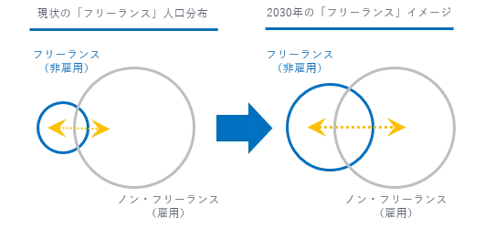 雇用・非雇用の境界が曖昧になり、両者の間を自由に行き来する時代に向けて、正社員〜派遣〜フリーランスという、雇用・契約形態にとらわれない、働き方の多様な選択肢が求められています。