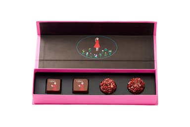 赤いベリーを思わせるほのかな甘みと酸味、豊かな香りを楽しめる「マダガスカル産シングルオリジン」のチョコレートを使用したマダガスカル産カカオの他、ミルクとホワイト、ストロベリーの4種をご用意。