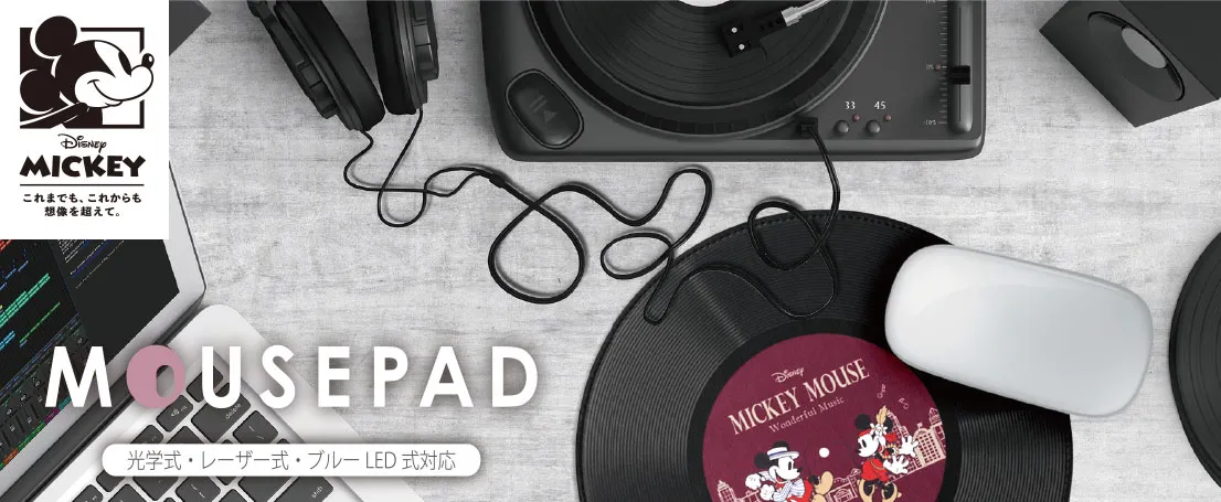 レコードをモチーフにした、レトロでかわいいミッキーマウスの キャラクターデザインが特徴のマウスパッドが発売