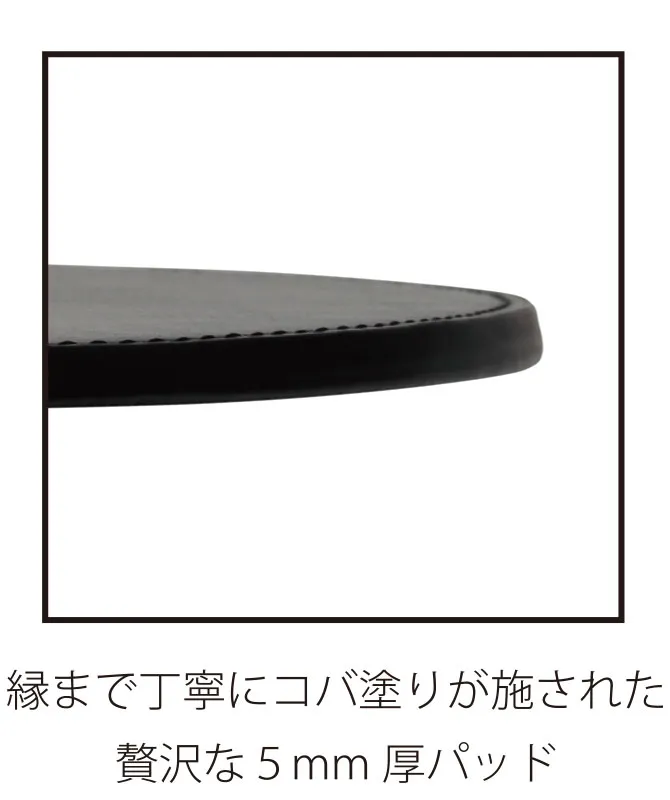縁まで丁寧にコバ塗りが施された贅沢な5mm厚パッド。