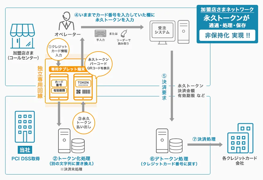 ※1クレジットカード番号などを別の文字列(トークン)に置き換え、保存・利用する技術です。クレジットカード番号管理資格(PCI DSS)の審査範囲の縮小などに応用されています。