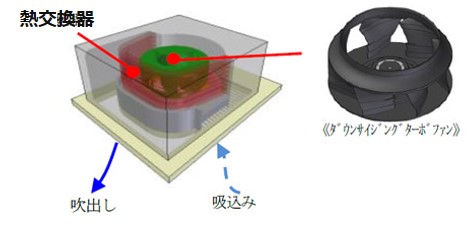 最小サイズを達成するため、吸い込みの開口を縮小しつつも必要風量を確保する高静圧なターボファンを新開発