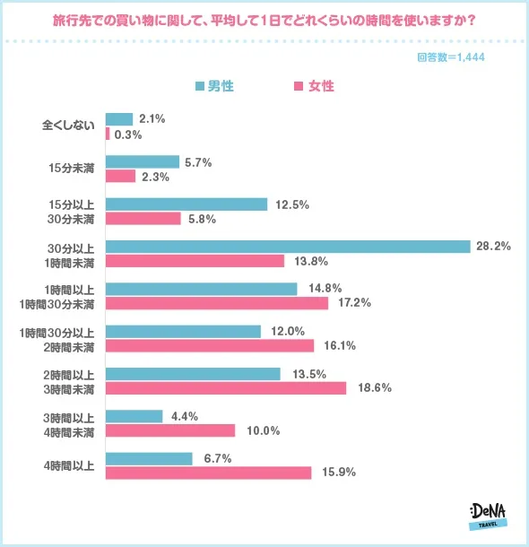 旅行中に1日3時間以上買い物する女性は25%超! 男性の前での散財はケンカの原因になることもあるので注意! 自分では買いがちだけどもらったら困るお土産ベスト3は 「キーホルダー」「民芸品」「置物」! ~DeNAトラベルが「旅行中の買い物」に関する調査を実施~
