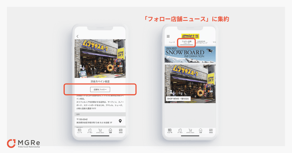 リニューアル前のアプリでユーザーが「お気に入り店舗」に登録していた情報は、MGReが提供する「店舗フォロー」機能として情報を引継ぎ、リニューアルを実現しました。