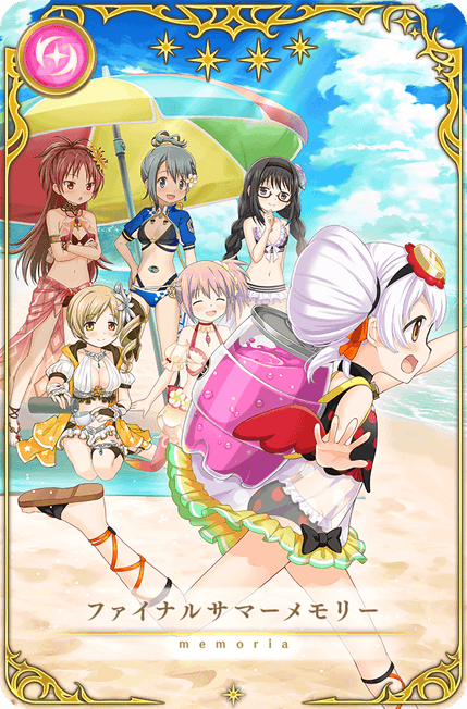 本ガチャより、新魔法少女「百江なぎさ 水着ver.(CV.阿澄佳奈)」と、新メモリア「ファイナルサマーメモリー」「大人買いに憧れて」が期間限定で登場いたします。