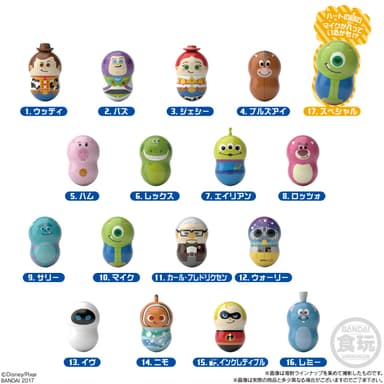 第1弾はディズニーとディズニー/ピクサーのそれぞれ全16キャラクターをラインナップ。ミッキー・ミニーはもちろん、チップやデールの楽しい仲間たちなどバラエティに富んだ全17種のラインナップとなっており、ディズニー/ピクサーからは映画「トイ・ストーリー」のウッディやバズ、映画「モンスターズ・インク」のサリーとマイク、昨年大ヒットした映画「ファインディング・ドリー」からニモなど、ピクサー映画で大活躍するキャラクターをラインナップしています。