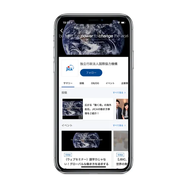 国内外の多様なステークホルダーとともにプロジェクトを進行していくため、国際協力の道に進みたいという学生だけではなく、グローバルに活躍したいという学生もJICAに興味・関心を抱いています。しかし、事業が多岐にわたるため、「仕事内容がイメージしづらい」という声が寄せられていました。そこで、学生とJICA職員が近い距離で接するなかで仕事や働き方への理解を深める機会を創るため「ビズリーチ・キャンパス」を導入します。企業ページを通じて、JICAに関するメディア掲載記事やオリジナル記事などの情報の発信や、OB/OGが登壇する座談会の開催等を通じて、仕事内容を理解してもらえる機会を創出してまいります。