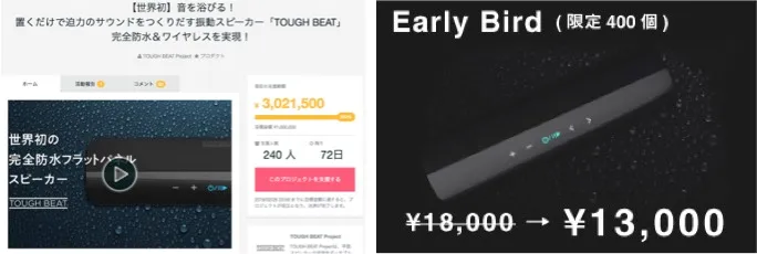 「TOUGH BEAT」は、現在CCC(TSUTAYA)グループのクラウドファンディングサイト「GREEN FUNDING by T-SITE」にて約2週間で300万円を集め、話題を呼んでいる振動スピーカーです。