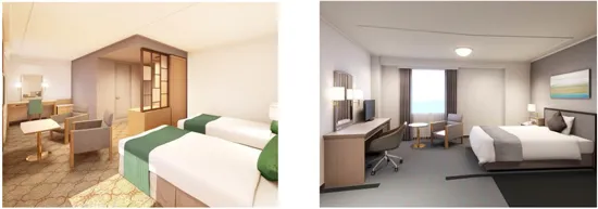 ・客室タイプ変更にともなうツインルーム増室による、標準収容人数増加(18室新設/136名→154名)