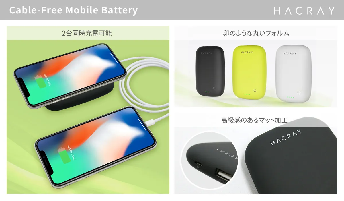 モバイルケース・アクセサリー専門の株式会社ロア・インターナショナル(所在地:東京都新宿区、代表取締役社長:Ally Won)は、2017年12月25日に新ブランドHACRAY(ハクライ)から「ワイヤレス充電器+モバイルバッテリー Cable-Free Mobile Battery」を発売しました。