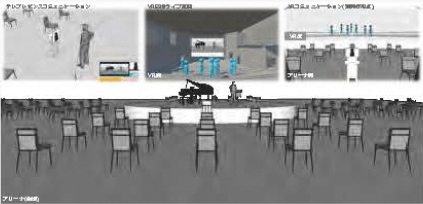 ○VRアプリの仮想空間上での映像視聴者が、実際の会場に設置したテレプレゼンスロボットと同化できるアトラクションを設置し、通信安定性を検証します。