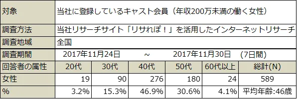 2018年から配偶者控除の年収要件が、現在の103万円から150万円に変更されることを受けて、フィールド・クラウドソーシング事業を展開するソフトブレ―ン・フィールド株式会社(本社東京都港区、代表取締役社長:木名瀬博)は、当社に登録しているキャスト会員(40代~50代女性の主婦が中心)を対象に、2018年からの働き方に関する意識調査を2017年11月24日~11月30日に実施しました。この改定により影響を受けると想定される働く主婦(年収200万円以内)が対象で、有効回答数は589名(平均年齢は46歳)でした。