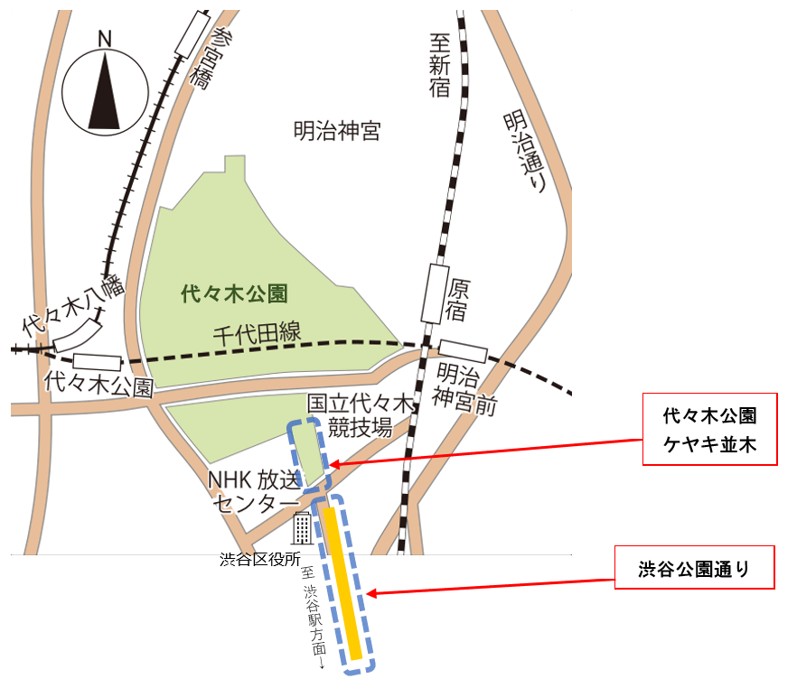 4.代々木公園ケヤキ並木位置図