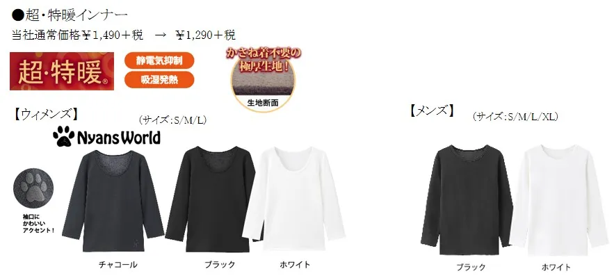 おすすめは、気温・シーンにあわせて3段階の暖かさが選べるマックヒートインナーシリーズが特別価格。