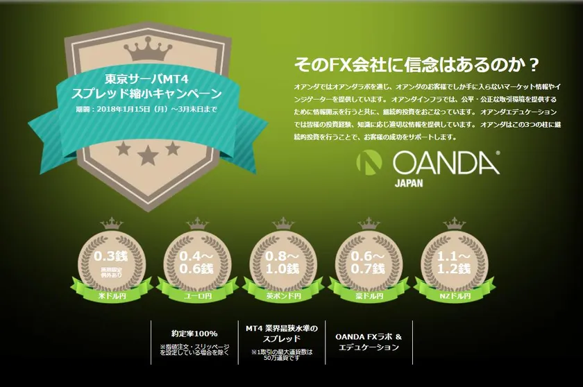 OANDA Japan株式会社、FXトレードのコストをもっと安く、 スプレッド縮小キャンペーンを2018年1月15日より実施