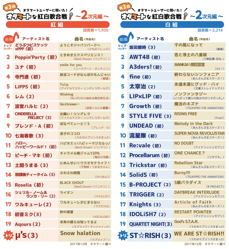 オタマート紅白歌合戦2017(3次元編)
