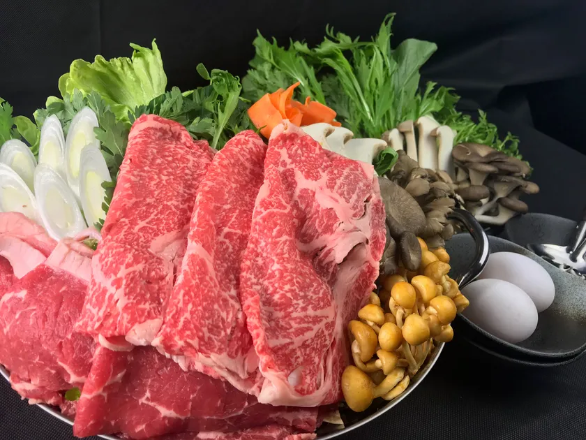 「いつでも気軽にいきなり豪華な家鍋が楽しめる」をコンセプトにしており、素材も厳選しており、野菜は国産100%、お肉も和牛やアグー豚など提供する直前に最適な厚さで店内にてカットしています。自慢の鍋メニューは、牛肉のすき焼き・牛肉のしゃぶしゃぶ(一人前 税抜き2,480円)をはじめ
