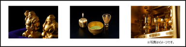 今年で8回目の開催となる松坂屋名古屋店「黄金の世界展」は毎回好評を博していますが、今回は各地で人気の“金仏具”をはじめとする優れた技と感性が光る金工芸の数々から、日常的に使用する食器まで、個性豊かでありながら精巧に仕上げられた約2,000点の金製品一堂に会します。