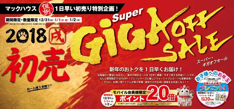 新年のおトクを一日早くお届け 初売「Super GIGA OFF SALE」開催