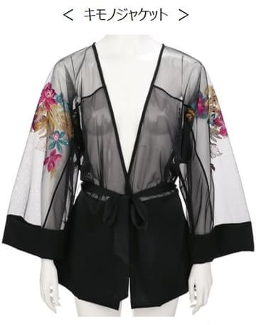 キモノジャケットは、アウターとして羽織ったり、優美な夜を演出するナイトウエアとして着用するなど、様々な着こなしを提案します。
