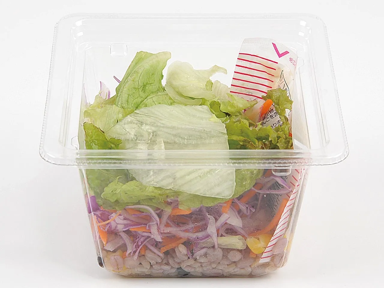 ライスミックスを使用した、軽い主食としてお召し上がりいただけるサラダです。別添のすりおろした玉葱に、にんにくの風味が特徴のオニオンドレッシングをかけてお召し上がりください。