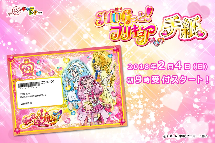 『キャラレター』( http://charaletter.com/ )では、人気テレビアニメの新シリーズ「HUGっと!プリキュア」から届くお手紙の受付を、初回放送終了後の2018年2月4日(日)午前9時より開始します。