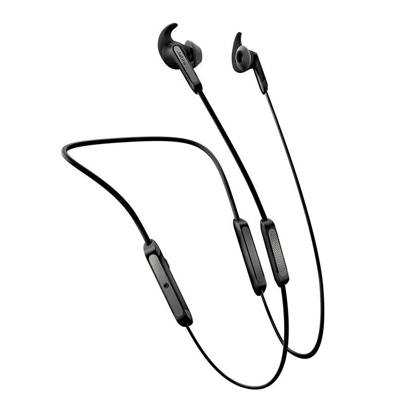 Elite 45e:最高の通話・音質体験を追求。控えめなデザインと優れたフィット感で、通話品質と音質の両方に優れた体験を求める方におすすめ。メモリーワイヤー付きのソフトネックバンド型イヤホンは軽量フォームファクタとユニークなボックス型マイクにより、どんなステレオワイヤレスイヤホンよりもクリアな音声をご提供します。