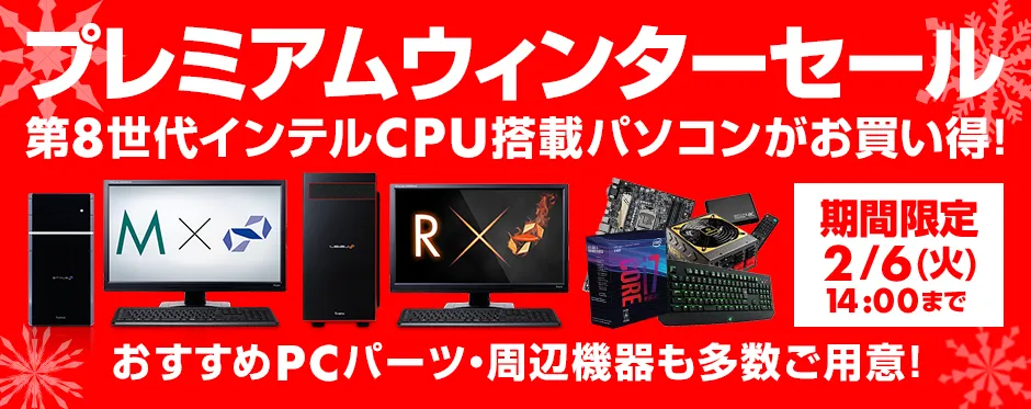 パソコン工房・グッドウィルを運営する株式会社ユニットコム(代表取締役:端田 泰三、本社:大阪市浪速区)は、パソコン工房Webサイトにて2018年1月9日(火)より『 プレミアムウィンターセール 』を開催いたしました。