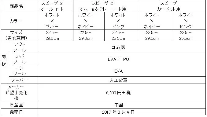 ■スリクソン テニスシューズ「スピーザ 2」シリーズの仕様
