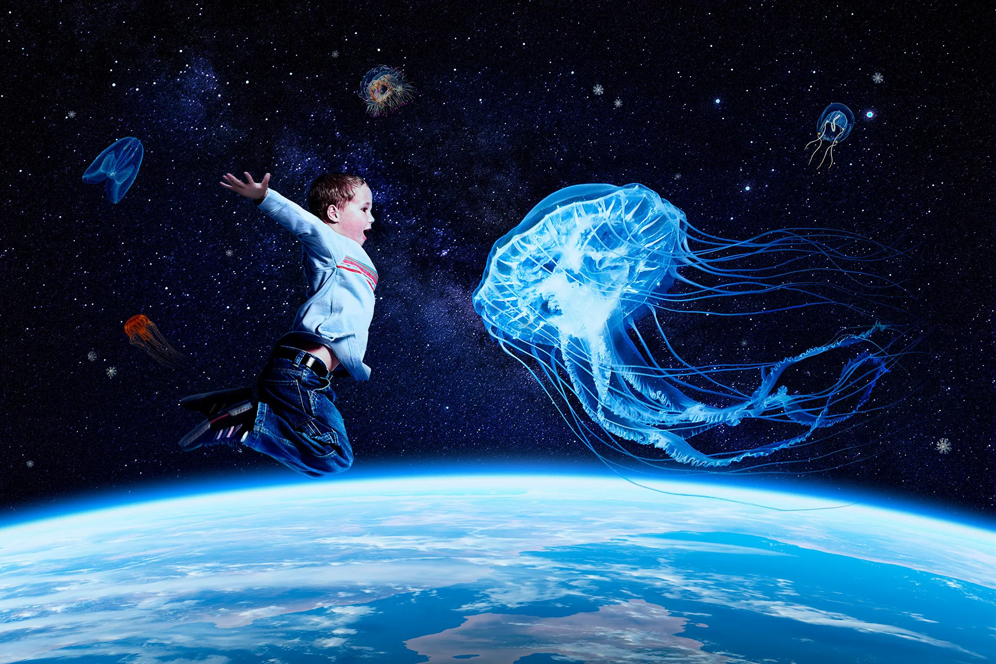 海遊館では1990年7月の開業以来、太平洋水槽を中心に大水槽で環太平洋の自然環境を再現してきました。2013年にオープンした新体感エリアでは、北極圏、フォークランド諸島、モルディブ諸島も加わり地球を舞台にしてまいりました。そして2018年、次にご覧いただく世界は「銀河」です。地球を取り囲む宇宙さえも感じられる新たな展示を展開してまいります。