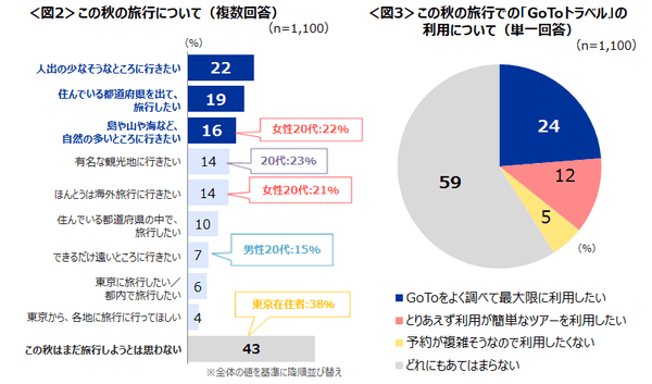 この秋の旅行は、「人出が少ない」「住んでいる都道府県以外」「自然が多い」ところが人気。 <図2>
