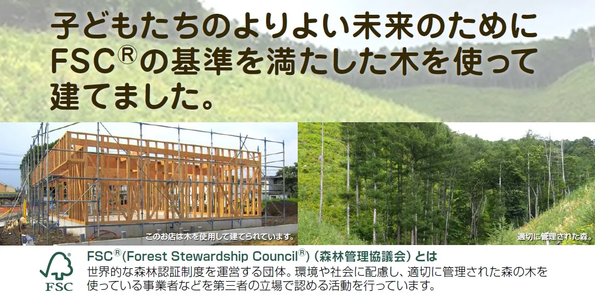 今後も、諸条件が合致した際にはリユース店舗の建設を行い、FSC(R)認証材を活用した取り組みを継続するとともに、環境と社会面で持続可能な店舗づくりを実現してまいります。