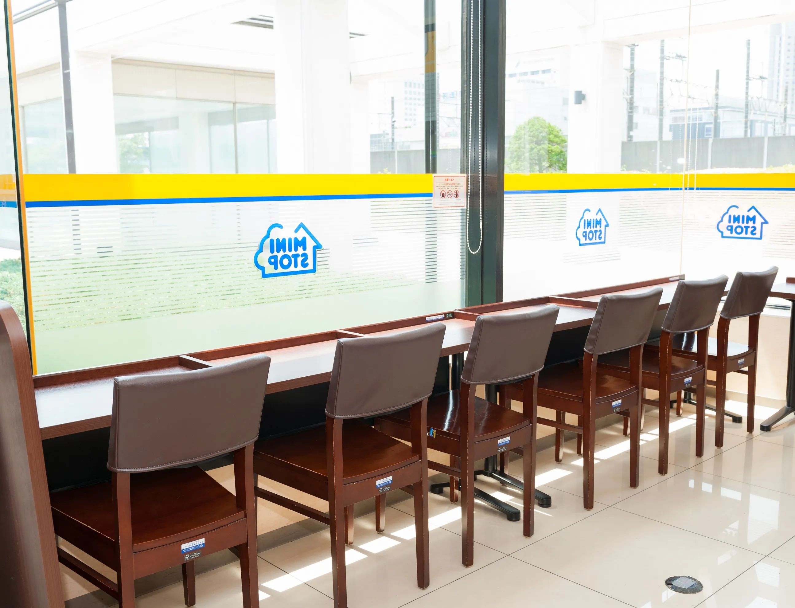 ミニストップでは、建物としてFSC(R)認証を取得した店舗と、FSC(R)認証材を使用した店舗の2通りを展開しています。該当店舗には、壁面等に告知をしお客さまにも訴求しています。