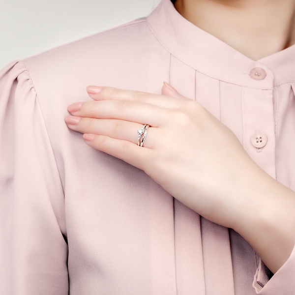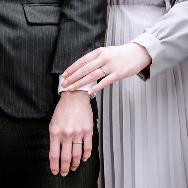 結婚指輪「リサータ・ウェーブ」との重ね着けで一層華やかに。シーンに合わせたコーディネートを楽しめます。