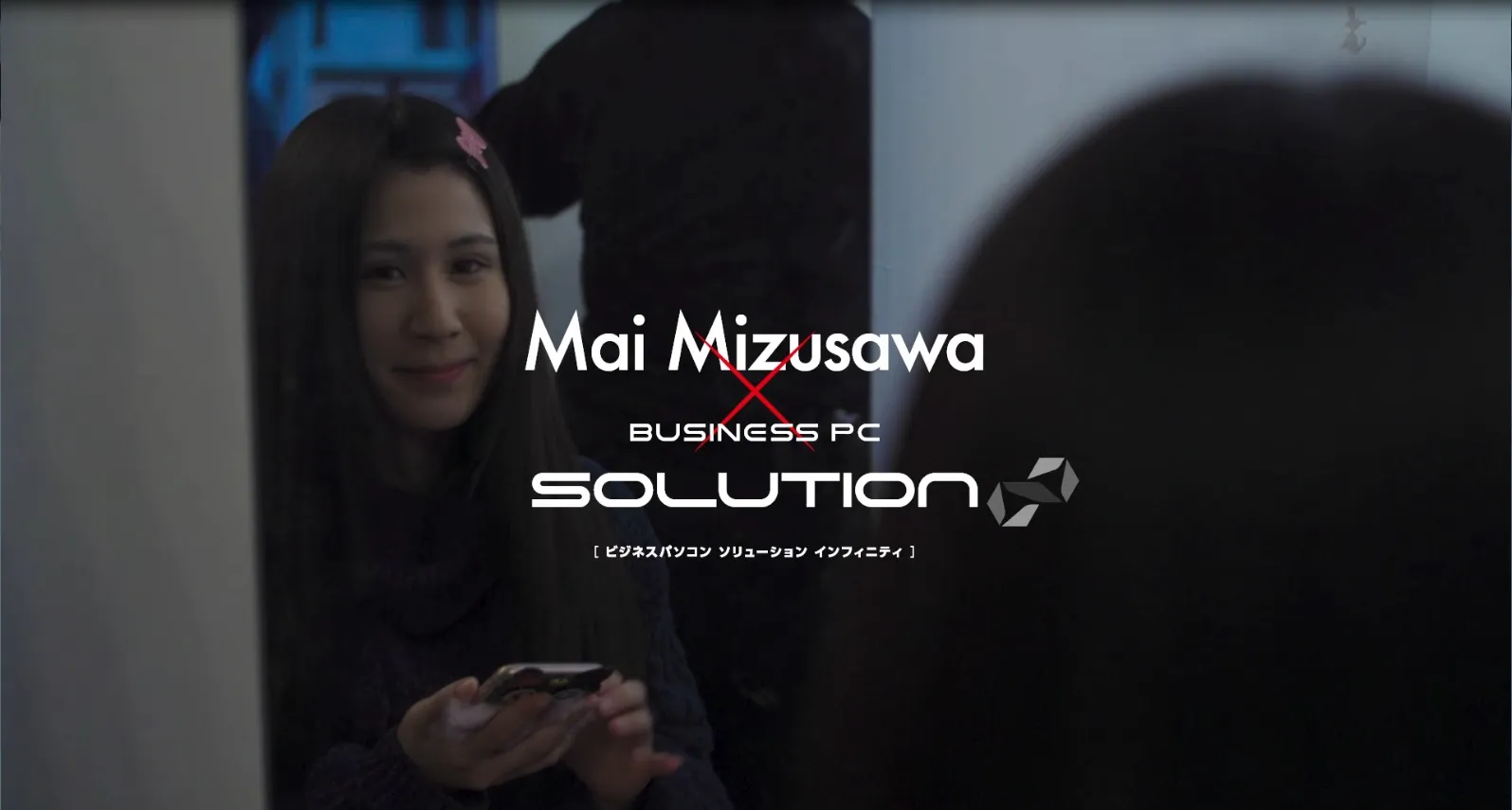 今回公開いたしますメイキング映像は、「iiyama PC」のビジネスパソコンブランド「SOLUTION∞」(ソリューション インフィニティ)シリーズを担当する水沢まいさんの、笑顔を絶やさない撮影現場での様子やメンバーとの楽しそうな姿、イメージガールとしての知的でクールな表情などを収めた魅力あふれる作品となっています。