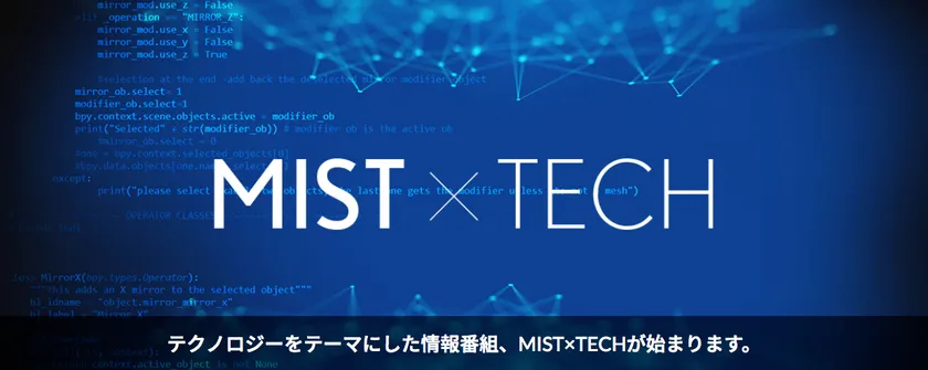 MIST実行委員会が運営するインターネット配信プロジェクト『MIST(ミスト)』は、2018年1月31日(水)19:00より、中野ブロードウェイ4階『Studio MIST(スタジオ・ミスト、所在地:東京都中野区)』にて、テクノロジーに焦点を当てた新しいインターネット番組『MIST×TECH』の放送を開始いたします。