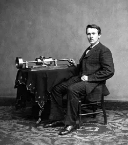 <エジソンと円筒式蓄音機>