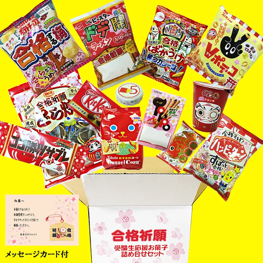 有名メーカー13種類の合格祈願お菓子をBOXに詰め合せて受験生を応援