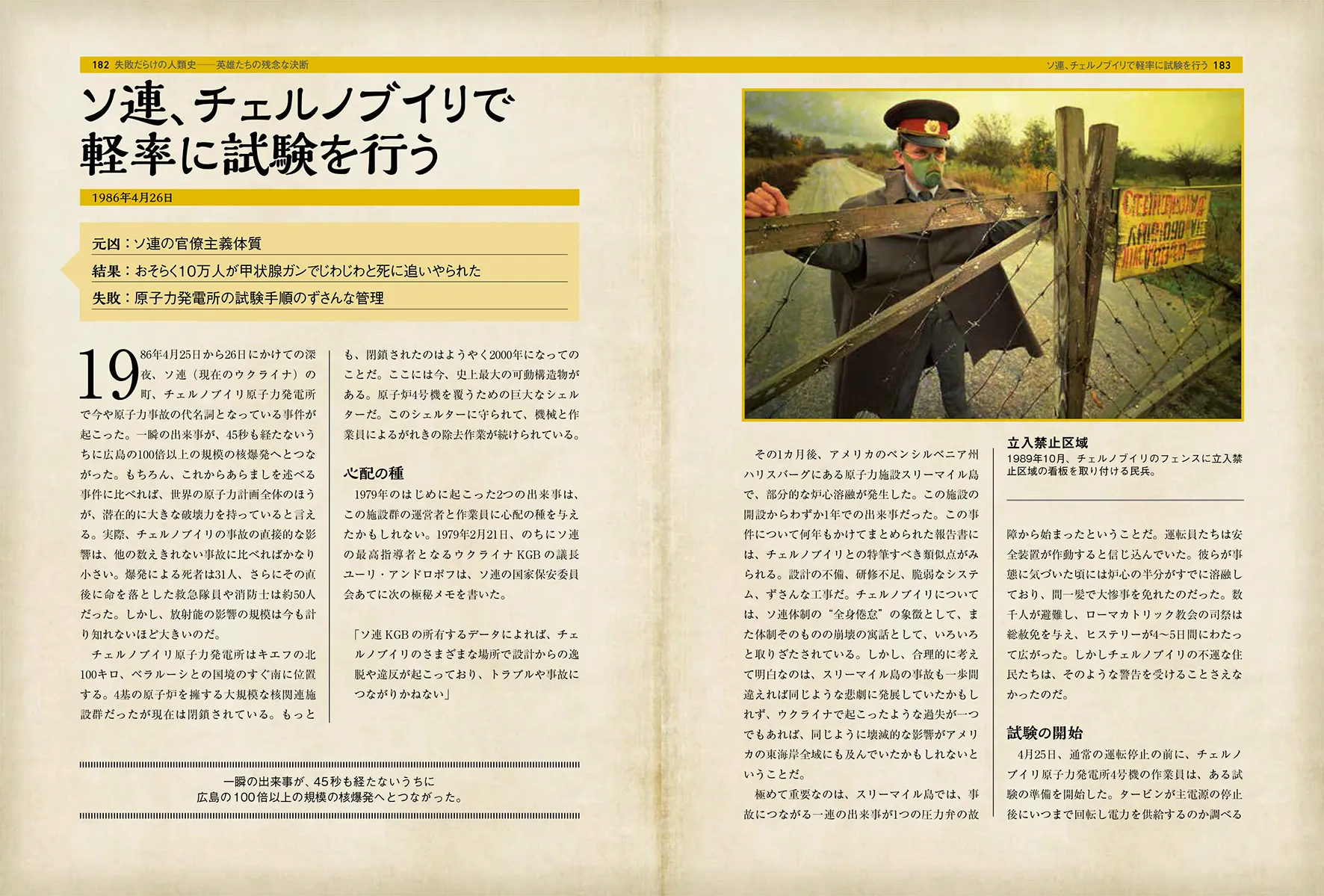 本書は、人類が犯してきた失敗の数々について、それぞれの出来事の背景、判断を誤った原因、失敗の影響などを分析したビジュアル書籍です。