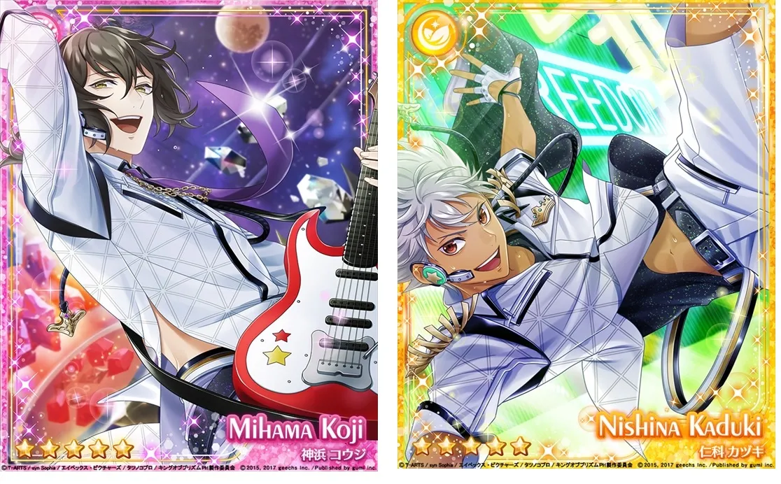 1月19日(金)より、「神浜コウジ」「仁科カヅキ」が、イベントボーナス付き限定カードとして登場するオーダー「KING OF PRISM~奇跡のプリプリコラボオーダー!~」を開催します。イベント「煌めくスタァたちのトキメキサイクリング ~公道での二人乗りは禁止だよ~」を有利に進めることができます。★5神浜コウジと、★5仁科カヅキは、期間中3回に分けて順次オーダーに登場します。さらに、各期間ごと1回限り、通常の半数のクリスタルで10オーダーができます。