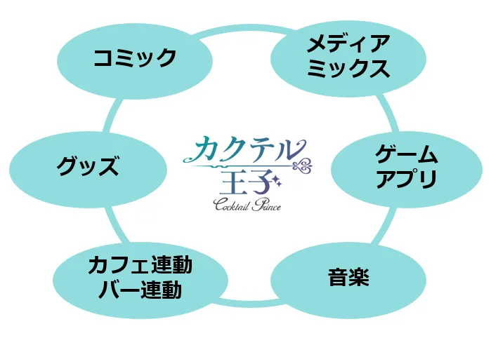 『カクテル王子(プリンス)』は、実際に存在するカクテルを多種多様なイケメンに擬人化させた、ギークスが手がける女性向けキャラクタープロジェクトです。2015年12月にプロジェクトが始動し、ゲーム・コミック・バーコラボ・グッズなどキャラクターを軸に多角的な展開をしています。