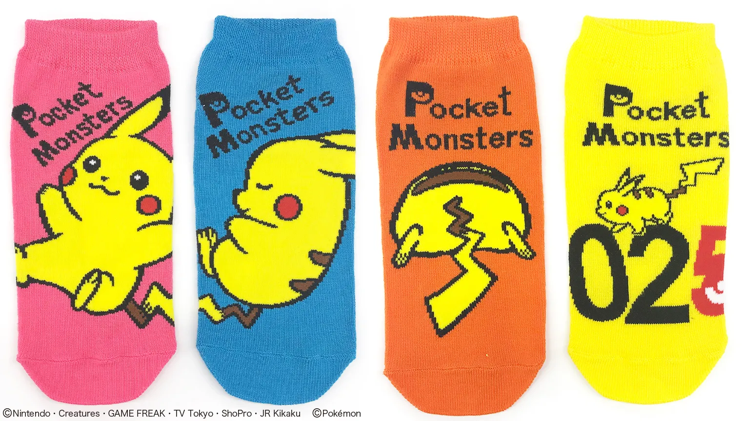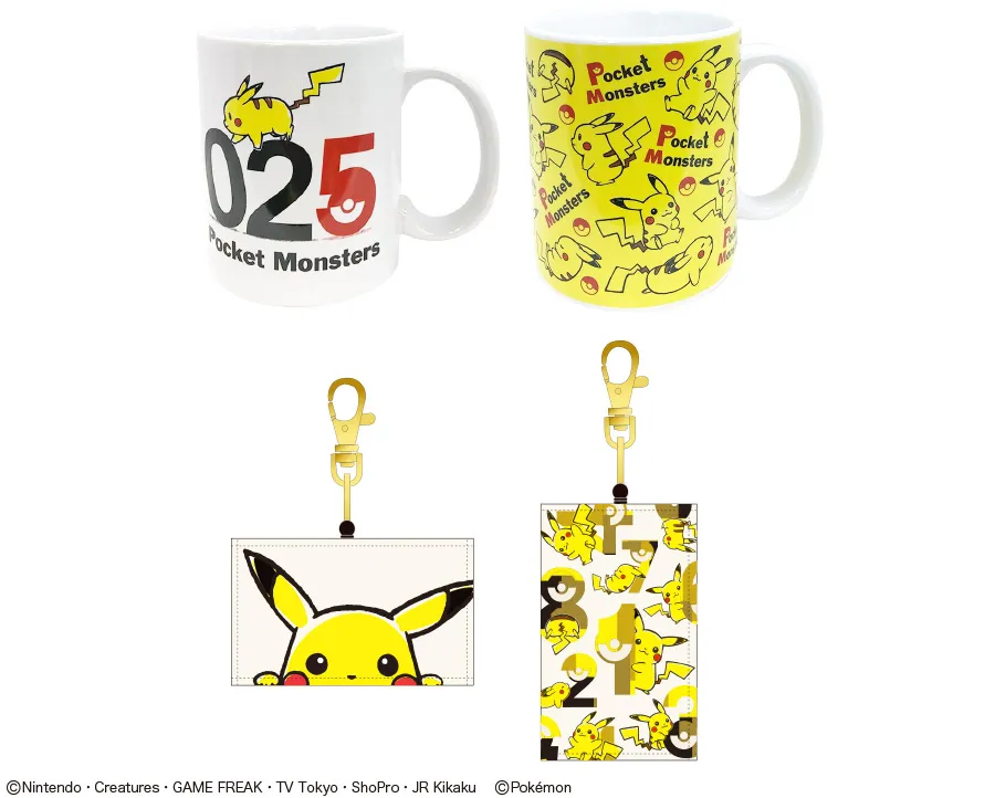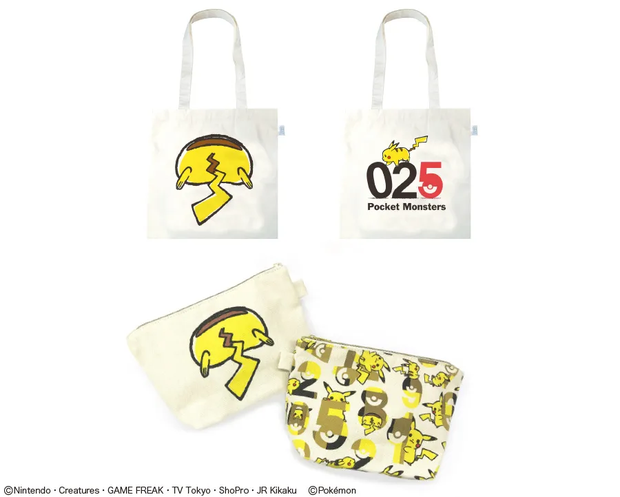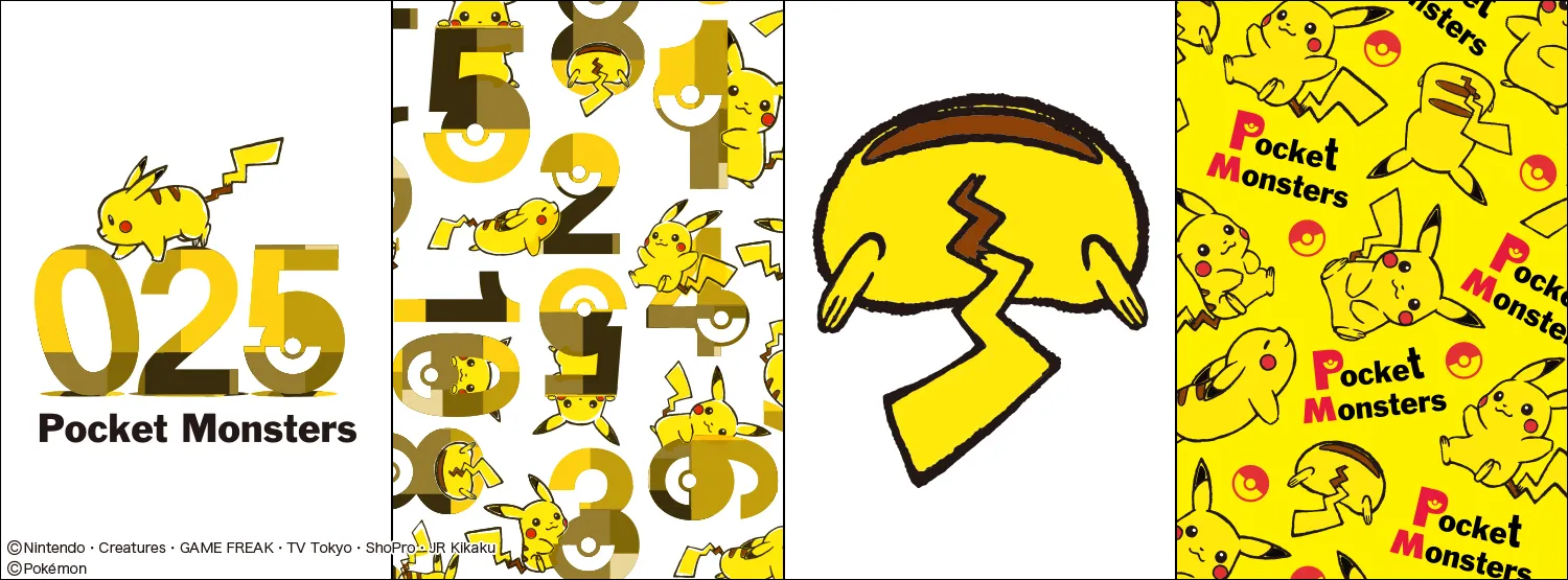 ピカチュウのぜんこくずかんのNo.025にちなんだ「ピカチュウ025柄」、ピカチュウと数字の組み合わせがグラフィカルでオシャレな「ナンバーいっぱい柄」、ピカチュウのまぁるいおしりがキュートな「ピカチュウおしり柄」、色々なピカチュウの表情が楽しめる「ピカチュウいっぱい柄」の4デザインで、ソックス・バッグ・ポーチ・ステーショナリーなど普段使いしやすい全18アイテムをラインナップ。
